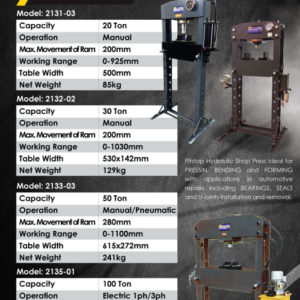 PIT STOP Hydraulic Shop Press With C/W Pressure Gauge