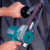- Versatile for use on wood, metal, and fiberglass materialsNarrow belt and exposed front pulley for use in close quarters or on irregular shapes