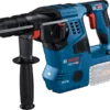 This rotary hammer is ideal for hammer drilling in concrete, stone, and masonry. It is compatible with all batteries and chargers in the Bosch Professional 18V System. For a dust-free and safer work environment, the GDE 18V-16 Professional dust extractor can be easily attached. It also features a storage hook and an LED light.