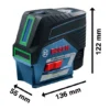 Tripod thread1/4″Battery voltage12.0 VLaser diode500 – 540 nm, < 10 mW, 630 – 650 nm, < 1mWOperating temperature-10 – 50 °CStorage temperature-20 – 70 °CLaser class2Working range20 mWorking range with receiver50 mAccuracy± 0.3 mm/m* (*plus use-dependent deviation)Working range of laser points, max.10 m (top), 10 m (bottom)Self-levelling range± 4°Dust and splash protectionIP 54 *** (***except for the lithium-ion battery and AA1 battery adapter)Operating time (max.)10 h (Li-Ion) and 4 h (4 x AA) in cross-line and point operation, 13 h (Li-Ion) and 6 h (4 x AA) in cross-line operation, 15 h (Li-Ion) and 12 h (4 x AA) in line operation, 60 h (Li-Ion) and 32 h (4 x AA) in point operationWeight, approx.0.6 kgColour of laser linegreenColor of plumb pointsredProjection2 lines / 2 pointsPlumb point accuracy± 0.7 mm/m* (*plus use-dependent deviation)Compatible laser receiversLR 7Working range, value20 mWorking range with receiver, value50 mGCL 2-50 CG Professional: Further information