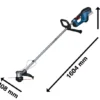The GRT 18V-33 Professional is a cordless grass trimmer with a powerful, brushless motor for high performance, more runtime, and a longer service life. You can manually adjust the motor speed to the current working conditions to optimize runtime. The electronic speed control keeps the rotational speed constant to maintain a steady cutting performance. The Bosch Anti-Tangle feature ensures smoother trimming progress, preventing blocking from long grass or weeds wrapping around the shaft. The well-balanced, lightweight design and the low noise level support effortless working. Its durable Pro-Tap system with EasyWind for quick line loading provides a cutting diameter of 33 cm. The plant protector ensures a clean finish on edges while shielding precious trees and plants.