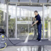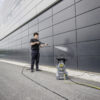 Ergonomic, mobile, powerful and compact: The HD 4/10 X Classic high-pressure cleaner impresses with its durable and reliable components such as the three-piston axial pump and an induction motor, as well as its compact and robust design. The automatic pressure relief system effectively protects the hydraulic components, thus ensuring a long lifetime and very low repair and maintenance costs. Furthermore, it reduces the traction force on the trigger gun, thus allowing long, fatigue-free periods of work. The ergonomic and user-friendly HD 4/10 X Classic is extremely easy to use and, thanks to its integrated hose reel and retractable pull handle, ensures a high degree of user comfort. With a working pressure of 100 bar, an hourly water volume of 400 litres, and stable wheels for easy transportation and high mobility at the site of use, the HD 4/10 X Classic high-pressure cleaner is suitable for diverse applications, for example in the building industry or for occasional vehicle cleaning.