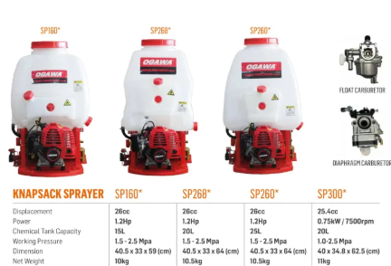 OGAWA KNAPSACK SPRAYER C/W 2 STROKE ENGINE SP160MF 15L / SP268MF 20L / SP260MF 25L